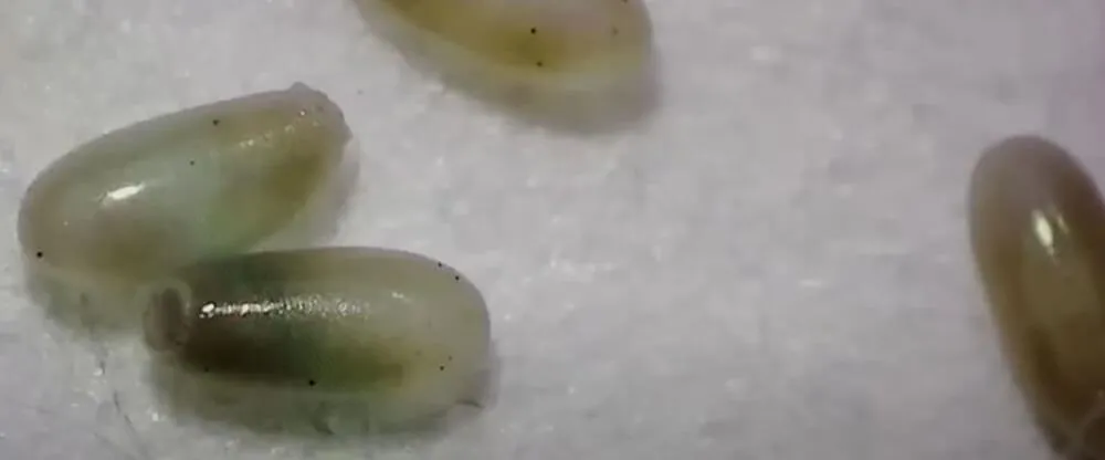 Они имеют овальную форму. По цвету — молочно-белые или полупрозрачные, с легким блеском. Очень похожи на рисовые зернышки, но гораздо меньшего размера — от 0,5 до 1 мм. Яйца тараканов или блох гораздо крупнее, так что вы их не перепутаете. Но вот обнаружить яйцеклад очень сложно. И не только из-за микроскопических размеров, но и потому что самки делают его в самых укромных местах.